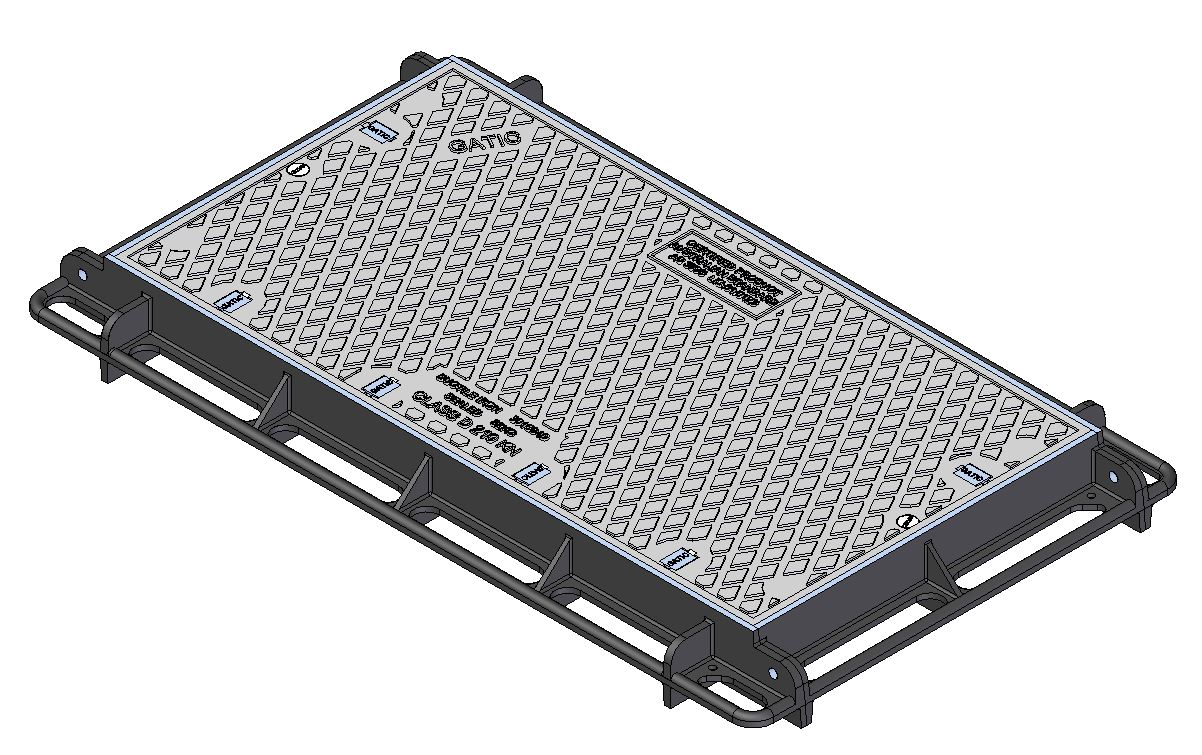610mm W x 1664mm L Clear Opening, Ductile Iron, Concrete Infill Cover and Frame Assembly, 3 Part Cover, Class D